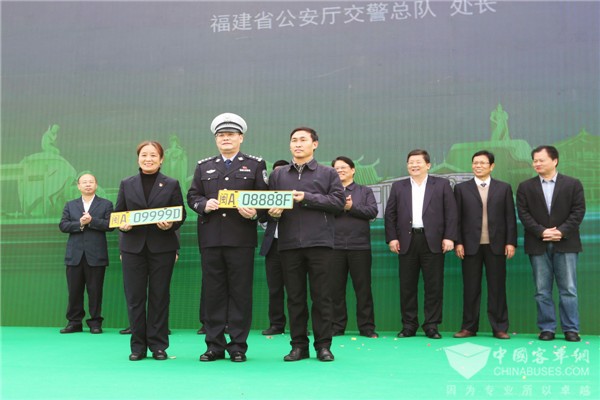 2017年12月29日,由福建省新能源汽车推广应用和产业发展联席会议主办的福建省新能源公交车推广应用集中上牌交车仪式在福州举行。仪式现场,由金龙汽车集团生产的2017年最后一批共500多辆新能源纯电动公交车正式交付公交企业,省交警总队和省运管局现场为新投放的车辆开辟绿色通道,安装最新的新能源汽车专用牌照。