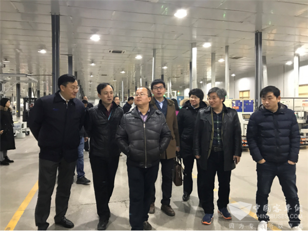 北京普莱德副总裁张仁柏(左一)陪同品质信息官代表团参观普莱德生产线