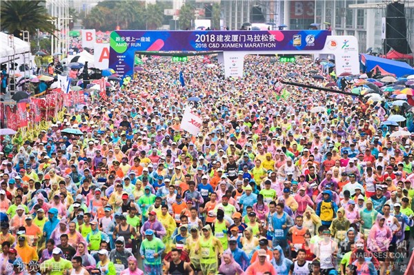 坚持的脚步,风雨无阻,3万多名跑者风雨中挑战2018厦马