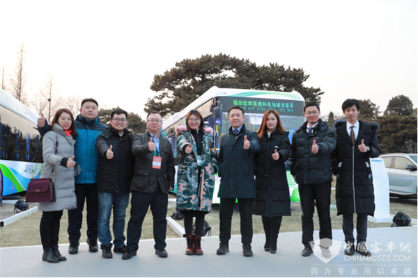 福田汽车领导、行业媒体代表与工作人员为福田欧辉点赞