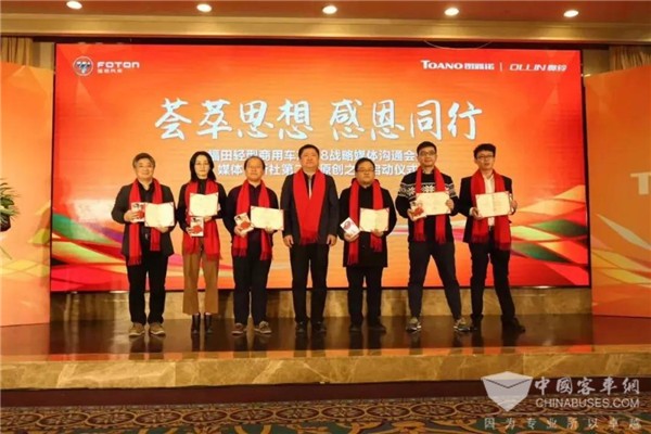 会上同期举行了媒体创新社第一季最佳原创内容媒体的颁奖仪式,6家行业权威媒体分别被评为最佳原创产品、深度、用户、物流、访谈、事件媒体。在各大权威行业、媒体大咖的共同见证下,福田轻型商用车媒体创新社第二季原创之星评选正式启动,各大媒体将在2018年持续为福田轻型商用车输出更高质、深度、全面的原创作品以及关于未来发展的意见建议。2018年荟萃思想,福田奥铃、图雅诺品牌将更具内涵和魅力,带着新的历史使命星耀起航。