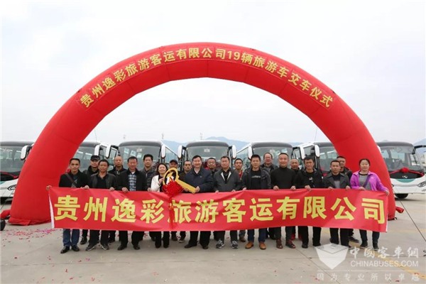 2017年中才成立的贵州逸彩另辟蹊径,召集客运领域精英共同组建。这支队伍瞄准客运互联网+,拓展渠道,集合上下游、多元化经营管理。“旅游产业进行互联网升级是目前大势所趋。旅游业要做好的三件事:资源、渠道和服务。只有把这三者协同起来,才能在激烈的市场中铸造核心竞争力。虽然公司2017年才成立,我们的主力成员全部来自行业的精英,公司的经营理念与策略清晰,包括对车辆的需求非常明确,比如品牌、产品特色、座位数等方面,我们与金龙客车贵州市场部接洽,一个小时就决定了采购19辆金龙客车。”贵州逸彩常务副总经理徐世英表示。