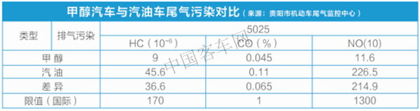 无独有偶,贵阳市运管局在2016年7月发布了贵阳甲醇出租车运营一周年大数据,根据贵阳市机动车尾气监控中心的检测结果,甲醇车的HC、CO、NO都远低于汽油车。
