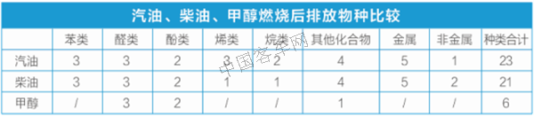 美国甲醇研究院的研究结论更能佐证甲醇作为替代燃料的可行性。他们研究表明,汽油、柴油汽车的排放物质有20多种,而甲醇汽车只有6种,且不含汽柴油车所排放的人体有害的苯、丁二烯等致癌物。