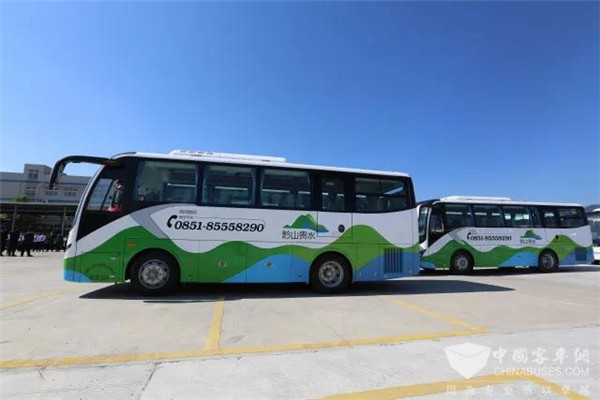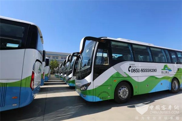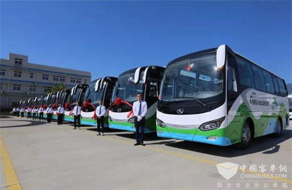 2018年3月9日,金龙客车厂区内阳光普照,一片明媚灿烂。在美好光景的映衬下,金龙客车39辆捷冠3正式交付贵州黔山贵水旅游客运有限公司(以下简称“黔山贵水旅游客运”)。