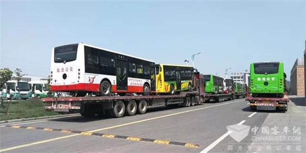 2018年4月12日清晨,阵阵微风吹散薄雾,金色朝晖洒满超龙。10余辆大型拖车已早早静候在厂内, 迎候益民公交首批订购的20辆东风超龙EQ6830CTBEV纯电动公交,远赴中国佤乡——云南临沧。