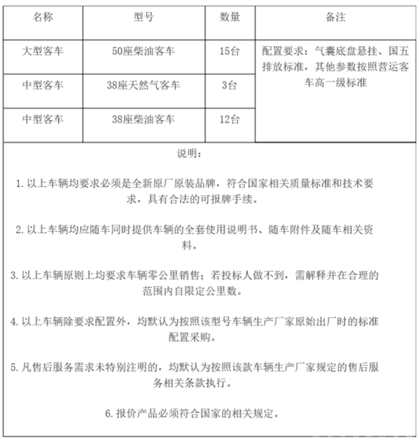 最新客车采购项目招标信息汇总