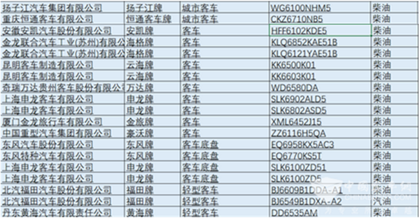 附:本批申报的客车产品如下