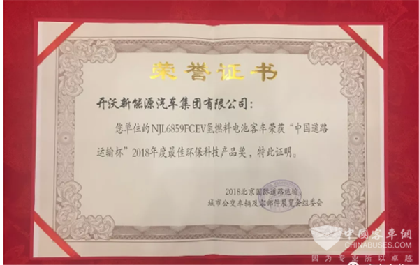 同期还举办了“中国道路运输杯”评奖活动,开沃F85氢燃料公交车荣获“2018年度最佳环保科技产品”奖,可谓实至名归,为中国新能源客车前沿探索及品牌进阶“打call”。