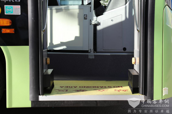 整车还配备悬架升降系统,可实现整车高度上升、下降及侧跪功能,提高整车通过性和乘坐舒适性,再配合翻转踏步的使用,将为乘坐轮椅和推婴儿车的乘客上下车提供极大的便利。