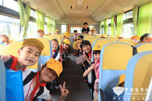 欢声笑语庆六一。对孩子来说,每年的六一是放假游玩的最佳时机,而海格校车就是孩子们旅途上最温馨可靠的护航者。校车,不应该仅仅简单地定义为“客运交通产品”,它更可以是教育的平台和载体。海格校车提出“安全性、学龄性、教育性、智慧性”四位一体的校车全新内涵,传承中华民族悠久的历史文化底蕴,传播弘扬中国儒家文化精髓,以“幼时立仁,儿时启智,少时习礼”的儿童成长顺序,打造全新文化校车,寓教于行,全时护航孩子成长的每一个阶段。