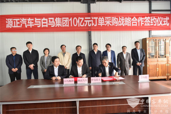 源正新能源客车及物流车生产基地奠基典礼同期,源正汽车与白马集团、珍宝巴士签订了10亿元订单采购战略合作,此次战略合作协议的签署不仅代表白马集团、珍宝巴士对与申龙长久以来合作的认可,也代表着他们对源正汽车的极大信任与支持,为源正汽车新能源生产基地正式奠基锦上添花。