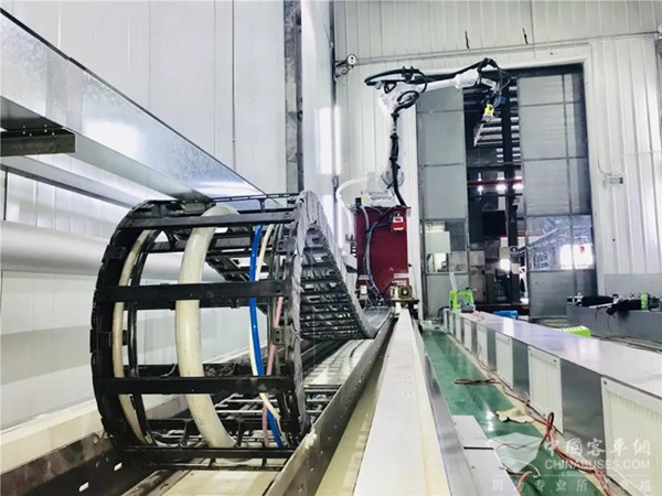 运用机器人、传感器、MES等,实现自动上料、自动涂装、自动检测、自动追溯等。2018年5月,首台“车身打磨机器人”在中车电动启用,成为客车行业首创。