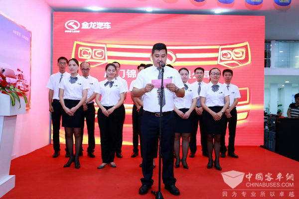 紧接着,厦门锦融的董事长刘炳煌先生也上台致辞,感谢各位百忙之中抽空参加本次活动,表达了对新店开业、新车上市的美好期许,并希望与金龙携手一起创下更多辉煌时刻。