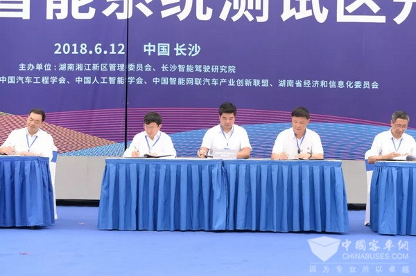 湘江新区智能系统测试区,包括高速道路、城市道路、乡村道路等项目。其中,全国首条开放道路自动驾驶公交示范运营线路,长7437米,沿途经过北往南7个公交站台,是一项多路况、复杂场景下的综合测试。