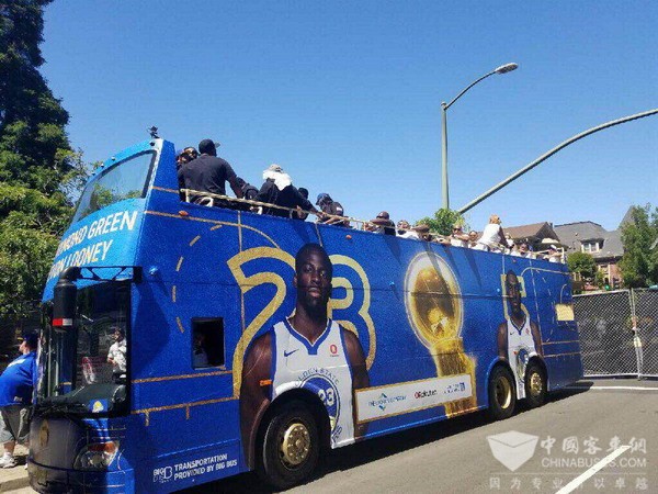 而在美国这百万人欢聚的盛大Party中,冠军勇士队游行时乘坐的大巴车却来自中国。没错!Made in China! 来自中国制造的——安凯双层敞篷观光巴士足以让每一位中国人为之骄傲。