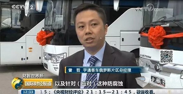 在2018年6月17日播出的报道中,宇通客车成为了节目中的主角。在中央二套《中国车助力俄罗斯世界杯》的专题中,刚刚在圣彼得堡完成新一批车辆交付的宇通客车成为了记者重点报道对象。在世界杯期间,包括6月13日交付的最后一批车辆在内,总计有300多辆宇通客车在整个俄罗斯的城市群里,承担着世界杯比赛期间运输球迷及媒体记者的重要任务。据俄罗斯官方公布的消息显示,中国企业宇通生产的客车之所以能服务俄罗斯世界杯承办的11个城市,是因为宇通客车的安全、性能可靠,并针对俄罗斯的特殊环境进行了车辆相应的改装。数据还显示,在服务世界杯的众多客车品牌中,宇通用车数量排名第一。俄罗斯官方表示在世界杯结束之后,这批宇通客车也会在俄罗斯承担其他的运输任务。在交付仪式上,身着民族盛装的俄罗斯姑娘为来自中国的贵宾献上象征着待客最高礼遇的面包和盐;中方代表则将象征友谊和智慧的中国结礼赠俄方, 圣彼得堡运输协会授予宇通“最佳中国伙伴”、“最佳旅游巴士提供商”荣誉,并期待双方在未来交通运输领域能有更深入的合作。宇通客车、俄方企业负责人分别致辞,让这份共赢的期盼,续奏双方合作乐章。