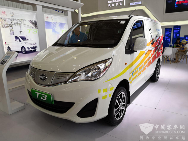 为满足城市物流运输的发展需求,比亚迪推出了覆盖全面的T系列纯电动专用车产品,可全方位满足城市物流日常配送需求,引领物流行业向电动化转型。此次,比亚迪展出的T3纯电动物流车采用MPV设计,车长约4.5米,载重0.8吨以上,货舱空间达3.5立方米。通过搭载比亚迪自主研发的铁电池,T3动力强劲、品质可靠,可有效解决物流行业“最后一公里”运输难题。