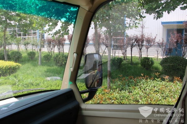 驾驶区右侧,采用一体成型大窗设计,视野宽阔,有助于驾驶员观察远离一侧的路面情况。