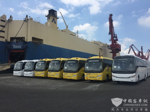 在许多阿拉伯国家、地区,金龙客车成为一道亮丽的交通风景线。