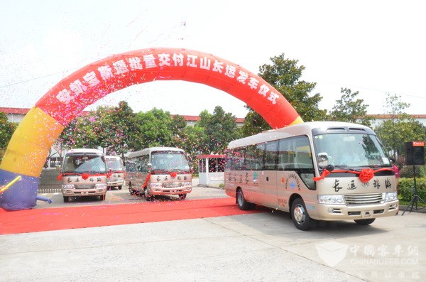 为了方便游客的交通出行,满足更多游客游览需求,浙江省江山市长运旅游运输有限公司(以下简称“江山长运”)再次采购了一批安凯宝斯通客车作为景区营运车辆使用。2018年7月24日,安凯宝斯通批量交付江山长运发车仪式在安凯客车扬州分公司隆重举行。
