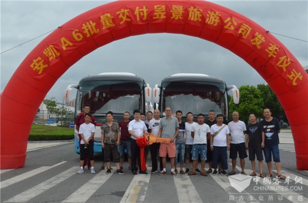 2018年7月27日,安凯A6批量交付贵州省长顺县昱景旅游有限公司(以下简称“昱景旅游公司”)发车仪式在安凯客车厂区举行,一排排蓝白相间的高端客车A6驶向了多彩贵州。