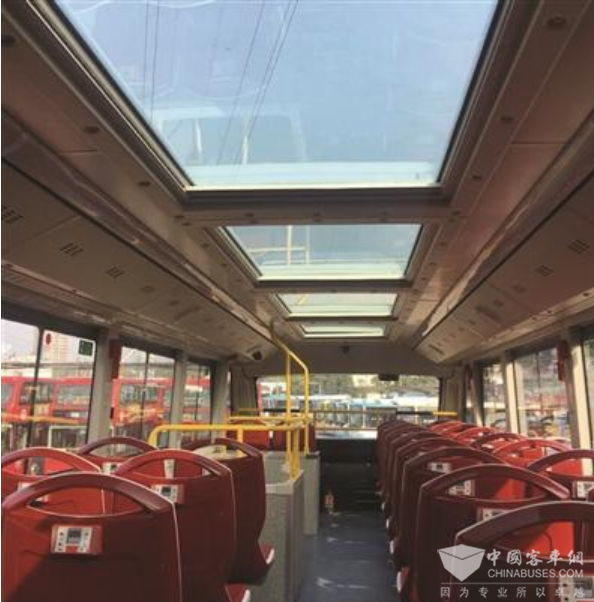 开沃汽车有限公司工作人员告诉记者,由于目前国内禁止敞篷双层巴士上路,所以他们特别设计了“全透明车顶”。作为一辆纯电动公交车,这种双层观光巴士续航里程可达到250公里以上。