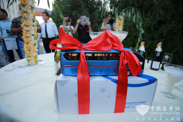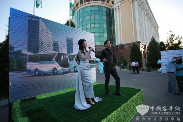 2018年7月10日,金龙客车在乌兹别克斯坦的撒马尔罕城市隆重举办发布会,会上展出了三款经典车型——XMQ6125AY、XMQ6901AY和XMQ6600。撒马尔罕城市市长、副市长以及旅游、运输、银行等行业代表客户约50人出席了发布会,本次发布会金龙客车再次展示、推介了其国际化的品牌形象及产品实力。在发布会现场还签订了批量订单和合作协议。