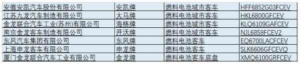 本批申报的7款燃料电池客车,包括了7个品牌,安凯、大马(九龙)、海格、开沃、东风、申龙、金龙。其中,金龙客车生产的为燃料电池客车底盘。
