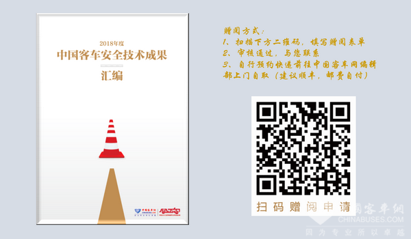 如果您或贵公司有意申请赠阅《2018年度中国客车安全技术成果汇编》,请扫描文中图片二维码,填写赠阅表单,编辑部审核通过后会与您取得联系并安排邮寄刊物。如果贵单位有意了解或参与《客车安全技术与应用交流专题》,请联系XINGKONG.COM。