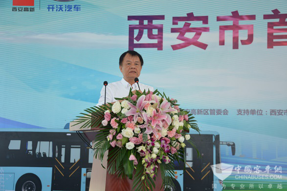 开沃集团董事长黄宏生在投运仪式上致辞2018年8月28日,西安市首批开沃纯电动公交车投运仪式在高新区举行,300辆开沃纯电动公交现场交付使用。西安市委副书记、市长上官吉庆,市委常委、常务副市长吕健,市政府副秘书长张选民,市发改委副主任施萍,市工信委副主任陈大为,西安城投集团党委书记、董事长张志文,高新区管委会副主任史康度,开沃集团董事长黄宏生,西安开沃汽车有限公司总经理刘宝刚等领导出席仪式,并作为首批乘客体验开沃纯电动公交车,共同感受了绿色、舒适、安全的新能源公交。