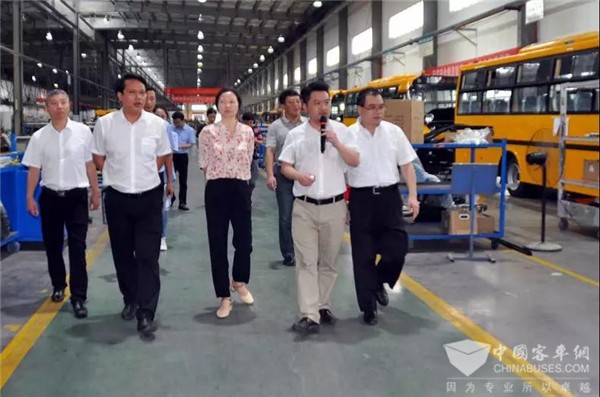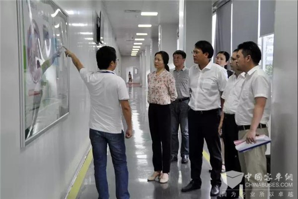 周华爱一行先后参观了博能上饶客车底盘生产线、总装生产线和安驰科技涂布、卷绕等无尘车间及企业自主研发的动力电池产品,听取企业发展情况介绍,实地感受到博能发展新能源产业的良好势头和勃勃生机。