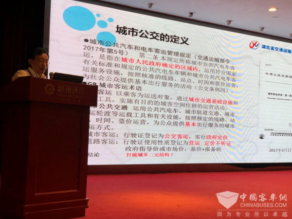 中国城市公共交通协会中小城市分会余长青处长讲解公安部客车安全技术标准暨《客车消防与锂电池安全管理的技术要求》。