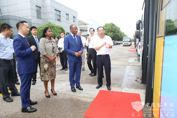黄书平总经理向佛得角总理席尔瓦介绍海格系列出口精品客车