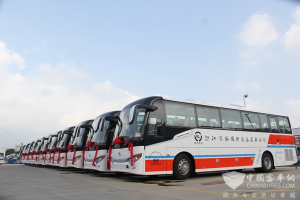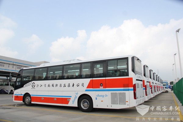 能取得如此成就,张总认为与企业一直以来注重软硬实力的提升密不可分。他表示,软实力主要指服务,服务是企业的生命力。硬实力方面,在激烈的市场竞争中,车辆的选择十分关键。“金龙客车无论是品牌、还是质量、外观、舒适性,都深受乘客认可。可以说,这么多年来,我们的成长路上一直有金龙陪伴。金龙客车高性价比的产品,也为企业带来了良好的经济效益,双方的合作实现了共赢发展。”基于对金龙客车品牌的充分肯定,在更新公司首批金龙客车时,浙江商旅再次选择了金龙客车。