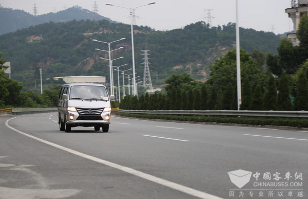 系好安全带,发动车辆,踩离合,挂挡,松手刹……起步的一系列操作给人的感觉就是简单轻快。车上一共坐着4个人,起步提速很是轻松,之后的换挡加速也非常顺畅。新时代海狮搭载的是一台新晨动力的XC4G20国Ⅴ排放发动机,排量为2.02升,额定功率为75kW,最大扭矩178N.m。试驾时当行驶到坡度较大的道路时,车辆还是显得有些力不从心,这时就需要切换到较低的挡位行驶,车辆动力算不上强劲但能够满足使用需求。但是面对如今的高速物流时代,也希望金旅能够提供马力更大的发动机以满足不同用户的需求。