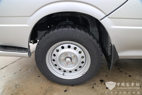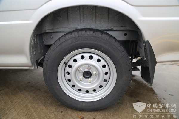 车辆制动轻点就有,制动力施加均匀,让人十分踏实。得益于车辆标配ABS防抱死制动系统和EBD电子制动力分配系统,制动更加平稳,制动距离进一步缩短。轮胎使用的是玲珑195/70R15LT轮胎,花纹型号为R666,特点是经济、耐磨、静音。