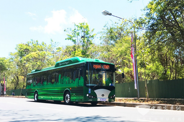 比亚迪纯电动巴士C6行驶在巴厘岛