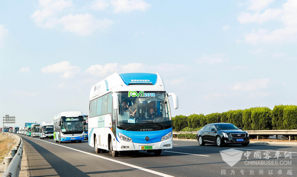 福田欧辉BJ6852氢燃料电池城间客车正式发车进行实路巡游