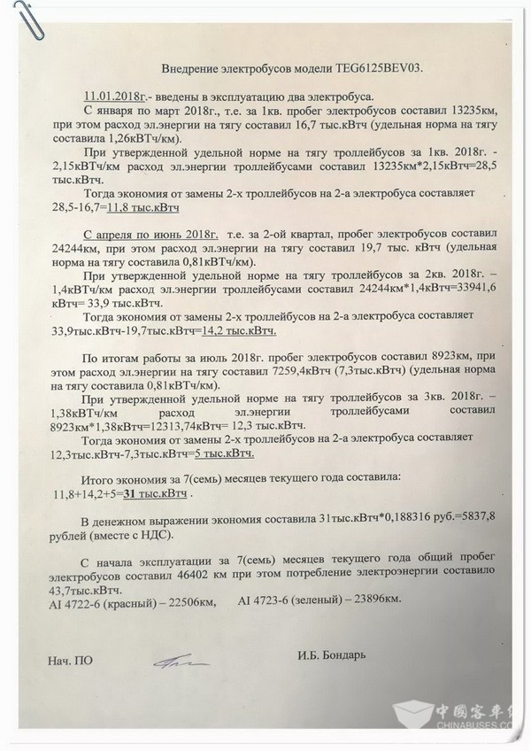 莫吉廖夫电车厂总经理马纳斯特里卡表示:这款车在当地的运营性能满意度非常高,并对车辆运营情况提供了书面评价函。
