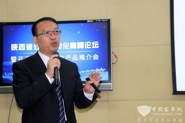 长安大学新能源研究院院长、陕西省公交协会副会长、教授肖润谋全面分析了西安公交车辆发展变化及电动化进程,肯定了西安公交在车辆电动化的发展与成绩,以及开沃汽车助力西安公交电动化的“西安奇迹”:在政府领导大力支持下,开沃汽车用一年时间成功实现在西安的生产运营。