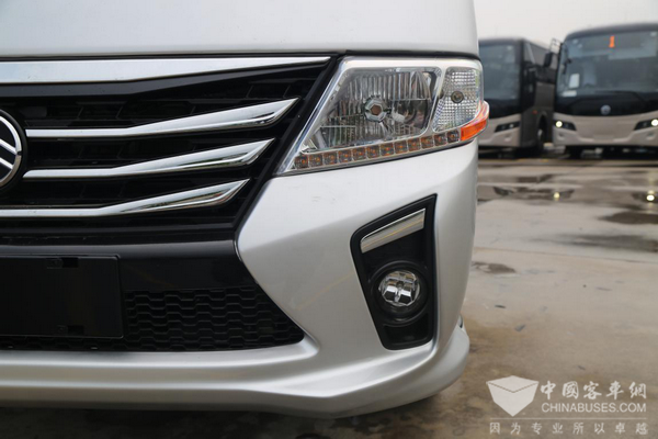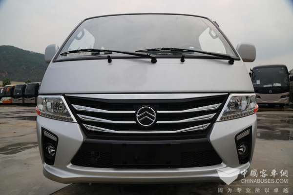 金旅“新时代”整车还是基于海狮的底子上改进的,不过在外观方面做出了一些优化改进。前脸部分由早期产品上的梯形格栅改进成了X形的造型,而且添加了非常犀利的镀铬装饰条,相比前者来说整个前脸更具有时代感和冲击感,也更加贴近现代年轻人的审美。