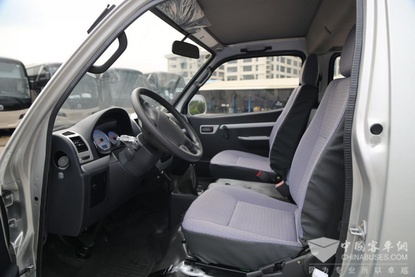 “新时代”的驾驶室内部虽说秉承了海狮一切以实用为主的设计,但是风格有有所变化。像车门板上面安装了很多银色装饰条,使得内部设计不再单调。此外座椅也采用了灰白色+黑色的配色,整个内饰风格相比之前的产品来说更加生动了。
