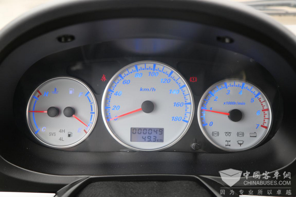 黑色仪表盘背景、镀铬装饰圈、白色表盘、蓝色亮光数字,整个仪表盘看上去十分直观。左边的是水温和油表,中间则是车速表,右边是发动机转速表,通俗易懂。高配车型则会搭配LED全显示屏仪表,带来更强的科技感。