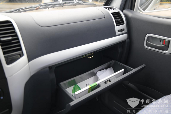 副驾上工作台里面是保险盒,下面则是储物盒。