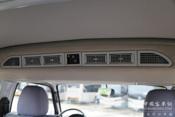 前排座椅的后上方还有一排空调出风口,主要针对后排乘客而设计的,空调采用了松芝的产品。