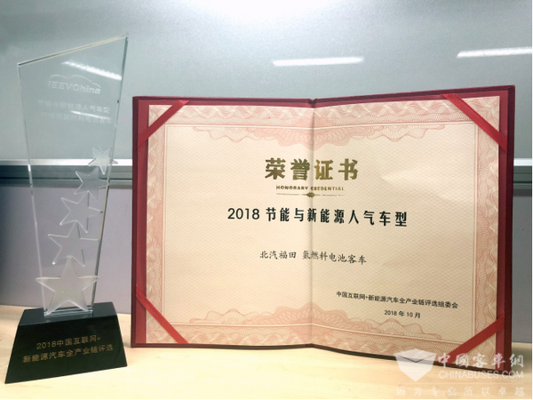福田欧辉荣获2018节能与新能源人气车型大奖