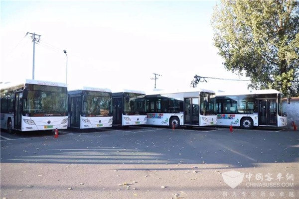 停靠在公交场站的福田欧辉氢燃料电池客车