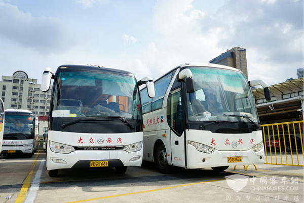 如今,在大众旅汽在线运营的车辆中,金旅车辆有近200辆,占有比例最大,是旅游包车的绝对主力,包括有XML6103、XML6127、XML6113、XML6907等经典车型,以及最近几年新上线的金旅凯歌、金旅锦程等。金旅客车在国内首推的客车整车阴极电泳生产线、首创的全承载式装配工艺等先进技术加持,让金旅客车品质熠熠生辉,赢得了市场用户高度青睐。走进上海大众旅汽公司总部停车场,可以看见近乎清一色的金旅客车品牌,分别服务于罗氏Roche、赛默飞世尔等国内外知名企业班车接送。