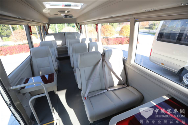 “T7 3.5T针对影响客车安全的五个阶段提出了主被动安全一体化解决方案。主动安全技术配置,可有效提高行驶安全,降低事故发生率;被动安全技术配置,可提高碰撞安全和逃生成功率。”申占初向XINGKONG.COM介绍,T7 3.5T全冲压车身广泛采用了高强板,车身强度高。车身结构经过了CAE分析与优化,一次性通过半载侧翻试验属国内首次通过该试验的冲压车身。